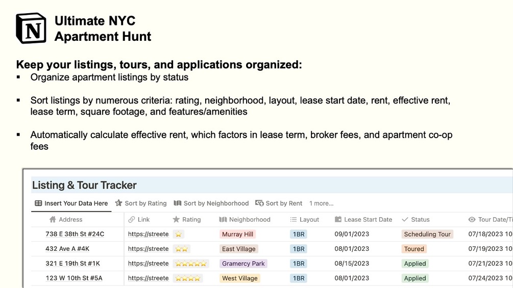 Notion Template: Ultimate NYC Apartment Hunt (or any city!)